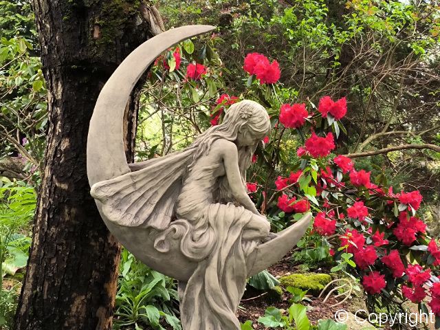 Figura przedstawia romantyczną Nimfę na Księżycu. Szerokość podstawy figury wynosi ok. 52×52 cm. Po obu stronach Nimfy na Księżycu są miejsca na świeczki. Duża, nastrojowa figura widoczna z daleka. Tajemnicza figura dodaje romantyzmu każdemu zakątkowi ogrodu….