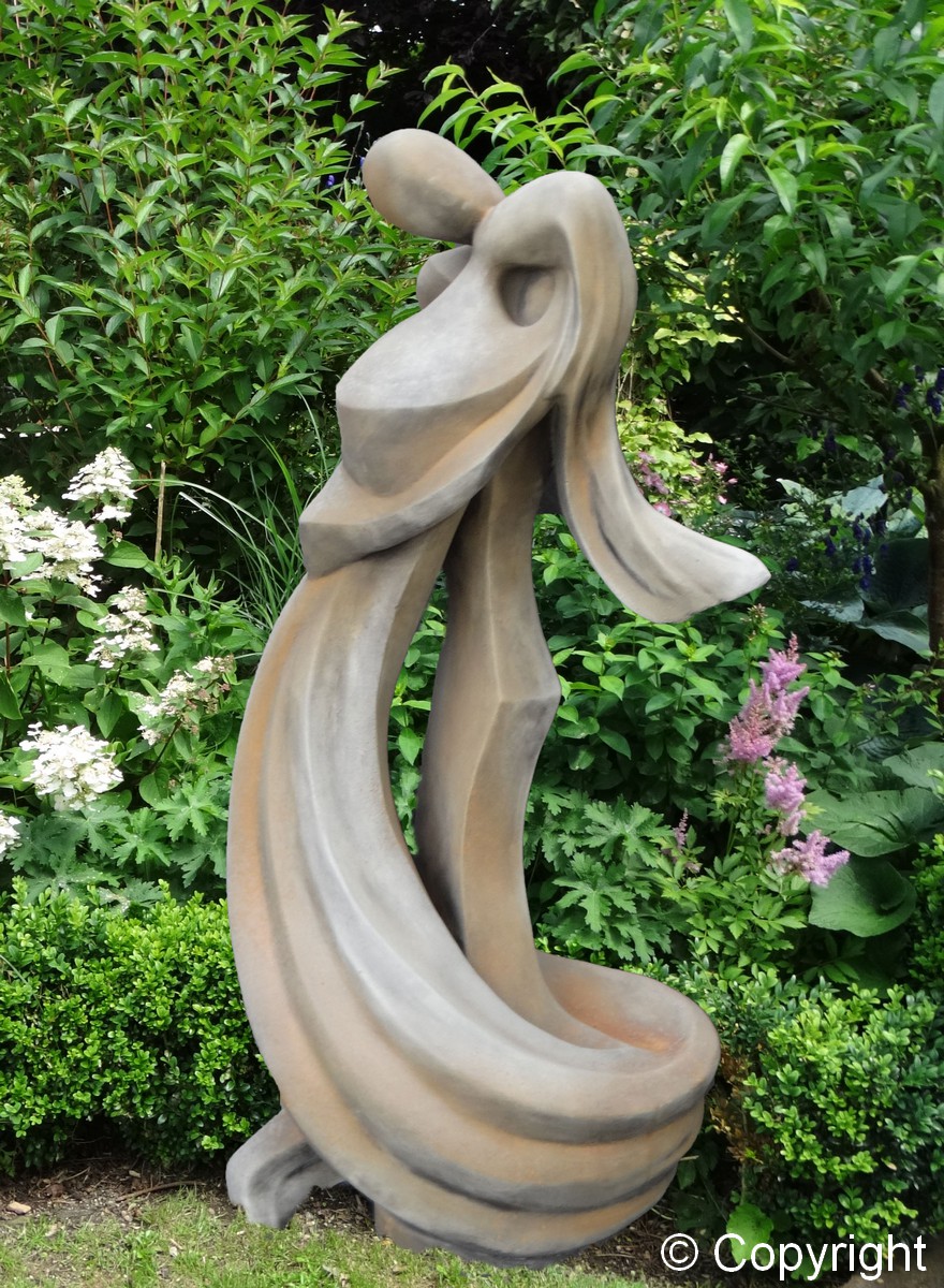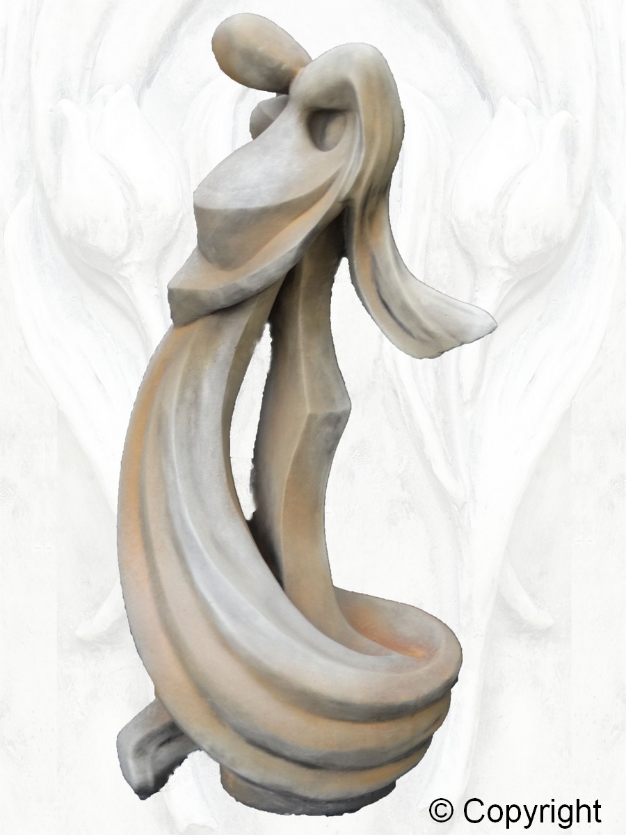 Figura wykonana z wysokiej jakości betonu przedstawiająca tańcząca z pasją parę. Kobieta stoi z przodu wyginając się, mężczyzna ją podtrzymuje. Twarze ich zbliżają się do siebie. Figura jest wykonana w specjalnym efekcie przyprószenia rdzą. Posąg proponujemy również w wersji mniejszej – wysokość ok. 80 cm (kod 116055R).